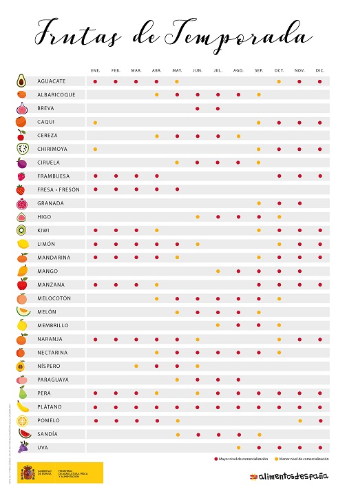 Calendario de frutas de temporada (Ministerio de Agricultura, Pesca y Alimentación)