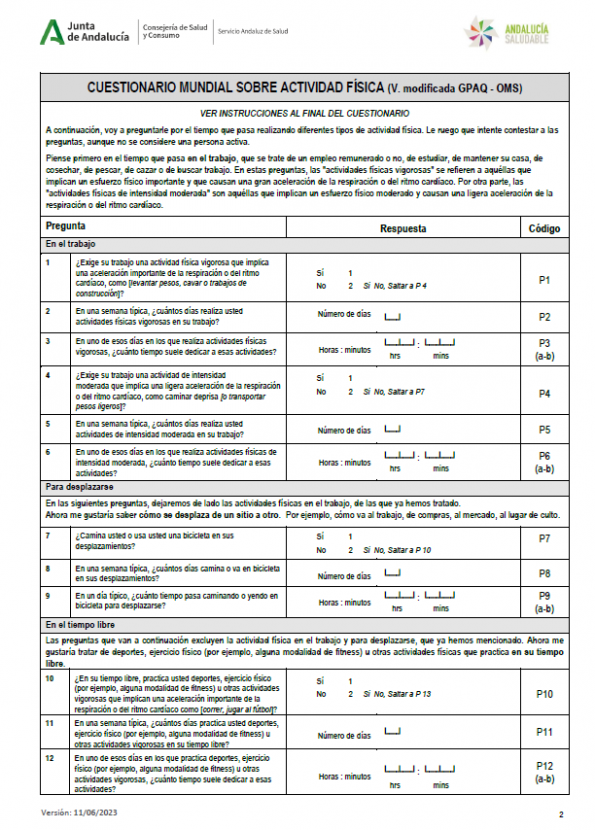 Cuestionario Mundial sobre Actividad Física (V. modificada GPAQ-OMS)