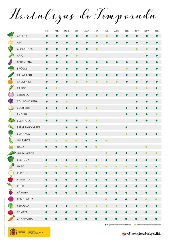 Calendario de hortalizas de temporada (Ministerio de Agricultura, Pesca y Alimentación)